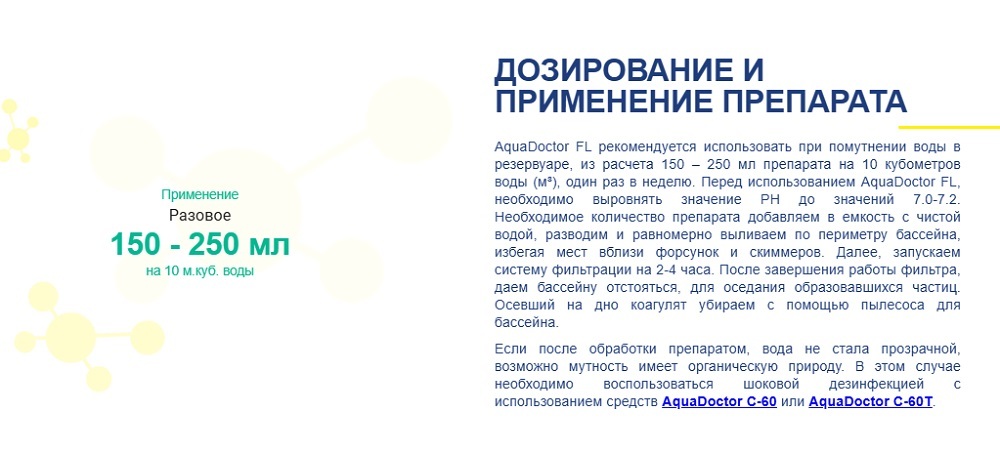 Регулярная обработка: 150-250 мл на 10 м³ воды